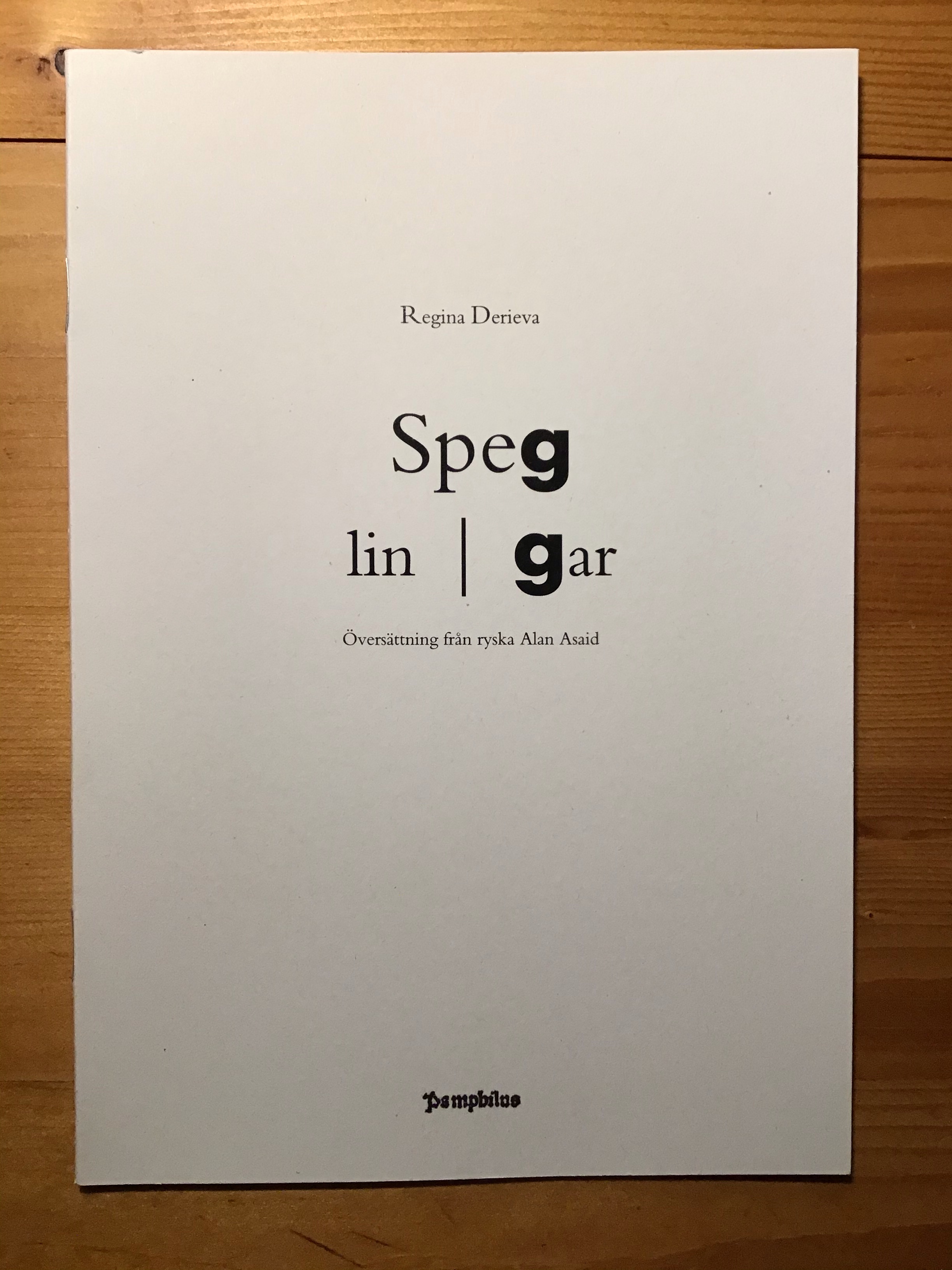 Regina Derieva (1949–2013) var en ryskspråkig författare som från slutet av 1990-talet levde och verkade i Sverige. Diktsviten Speglingar hör till författarskapets sista, om än aldrig fullbordade verk. Det presenteras här för första gången i sin helhet på svenska i en översättning gjord från manuskript.